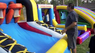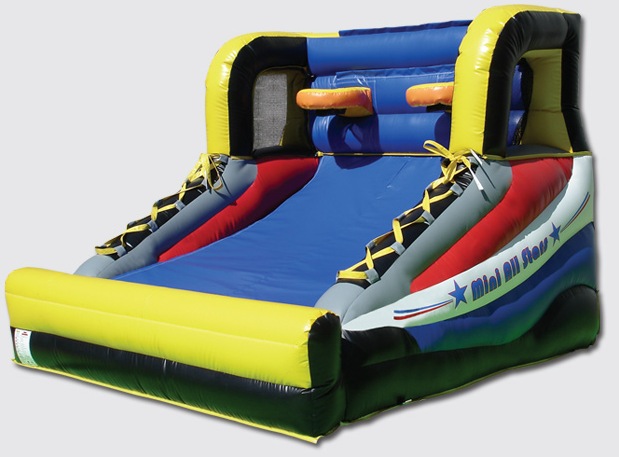 Basketball mini shoe includes the unit, blower and 2 mini basketballs. Two players race to make as many balls in the basketball goal as they can while competing against each other. Game is 9 feet x 9 feet.