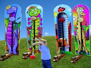 The Giraffe Kiddie Striker is 7' tall and perfect for kids 10 and younger. You will find kids lining up to give it a try! Comes with over sized rubber mallet.
