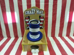 Place a mark line about 4-6 feet away from the game. Participant gets 2 balls to toss into the hat's top hole. Tabletop game. Recommended for all ages.